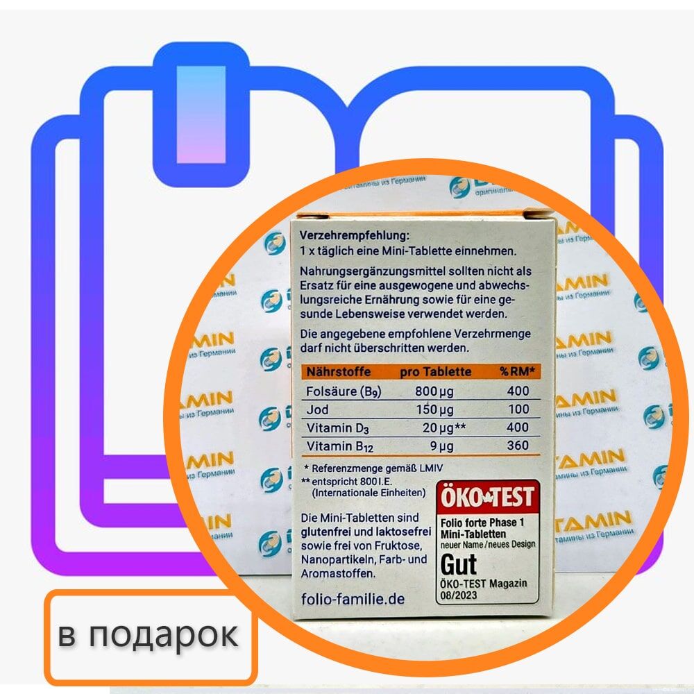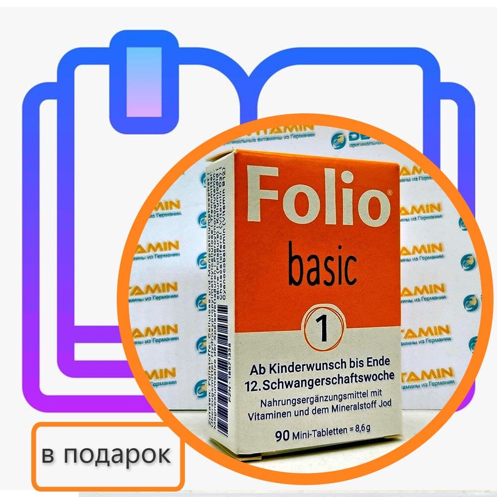 Брошюра + Folio 1 Фолио 1 витамины с фолиевой кислотой, для беременных, 90 шт, Германия (в подарок)