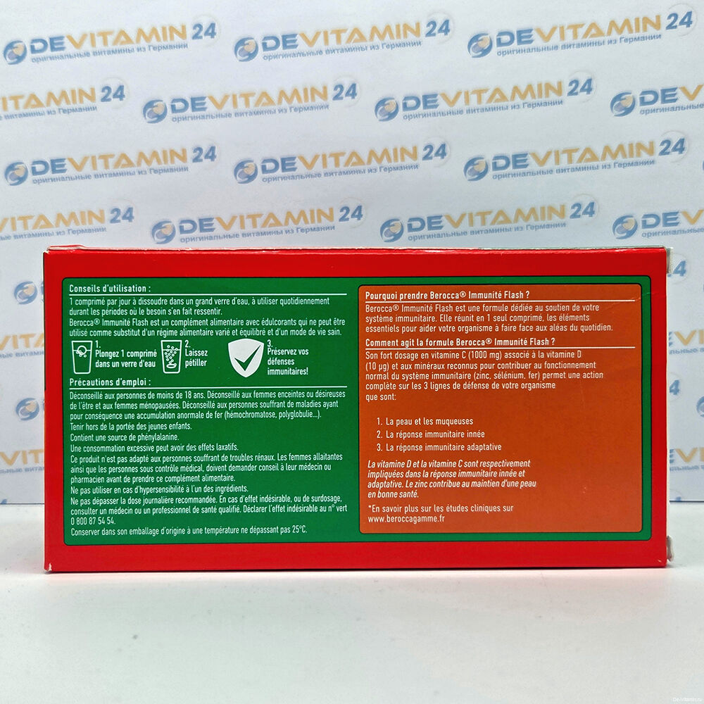 Berocca Flash Immunity — это пищевая добавка с подсластителями, которую следует использовать в дополнение к разнообразному и сбалансированному питанию и здоровому образу жизни.Хранение: