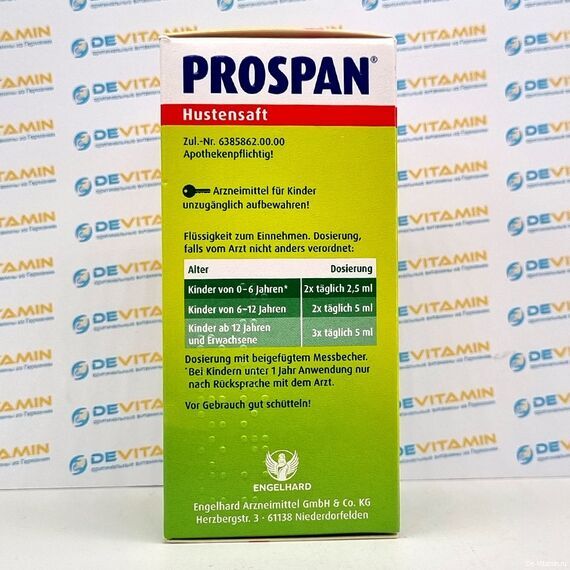 Engelhard Arzneimittel GmbH & Co.KG, ГерманияХарактеристики Prospan Kinder Проспан сироп от кашля для детей, 100 мл, Германия