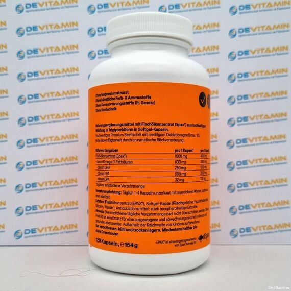 - Высококонцентрированный рыбий жир премиум-класса EPAX® : чистота и качество которого признаны во всем мире.