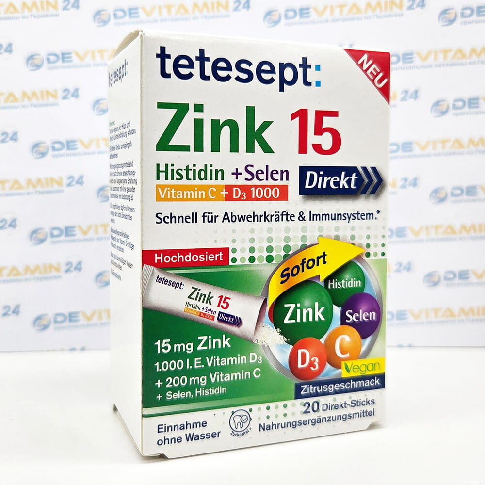 Знакомьтесь: Tetesept Zinc 15 Direct Sticks. Это не просто добавка, а твой карманный помощник для защиты организма. В одной маленькой упаковке скрывается мощная сила природы: