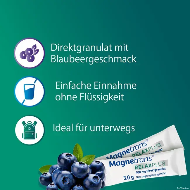 Магний — незаменимый минерал, который может быть бесценен, особенно в стрессовые периоды жизни. Тем, кто ежедневно совмещает работу и семью, магний оказывает надежную поддержку. Он помогает поддерживать внутреннее равновесие и укреплять нервы. Особенно вечером, когда сложно отключиться, магний раскрывает свои полезные свойства и вносит значительный вклад в улучшение самочувствия. Этот эффект дополняется уникальной комбинацией пяти витаминов группы B, которые поддерживают нервную систему и экстракта пассифлоры, который традиционно используется для снятия внутреннего беспокойства и напряжения. Эта гармоничная синергия обеспечивает вам дополнительное расслабление с Magnetrans® RelaxPlus.