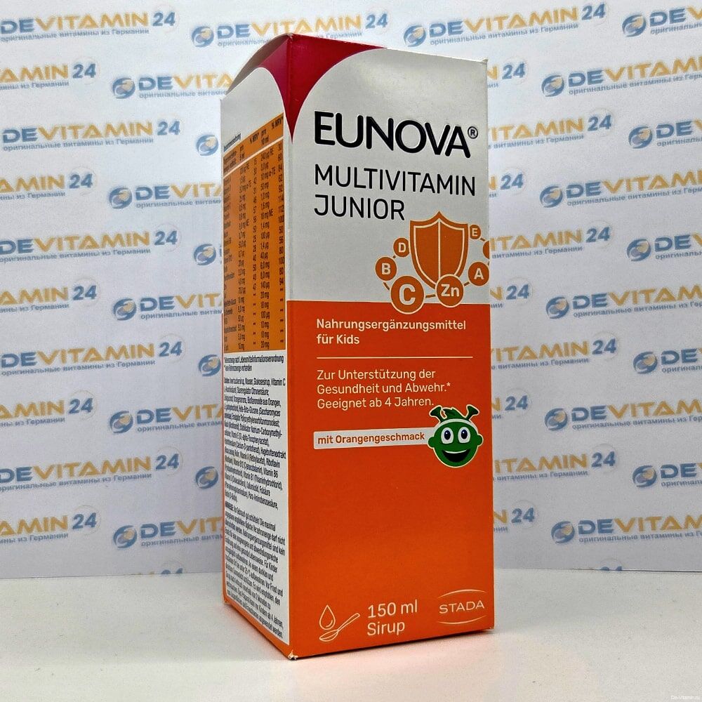 Eunova Junior Мультивитамины для детей в сиропе, 150 мл, Германия - Eunova Junior Syrup 150 мл с 12 витаминами и питательными веществами для детей от 4 лет.- Мультивитаминный комплекс для детей от 4 лет