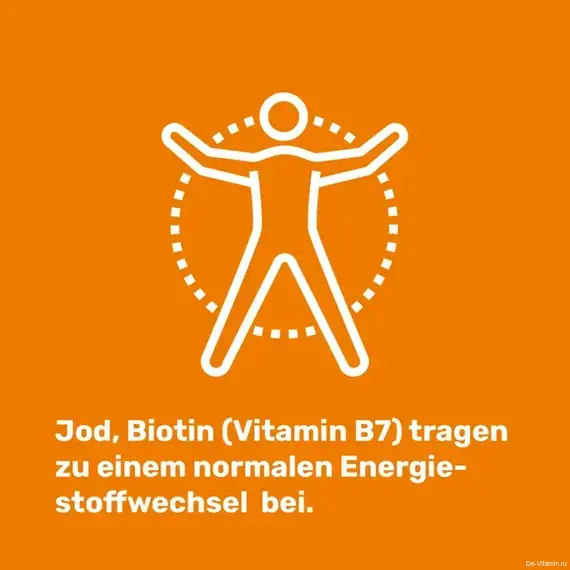 - Йод и биотин (витамин В7) способствуют нормальному энергетическому обмену.