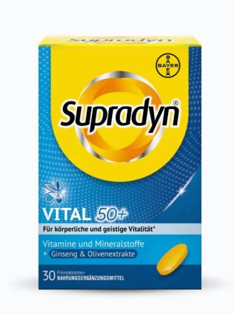 Характеристики Supradyn® Vital 50+ Ginseng + Olive Супрадин витаминно - минеральный комплекс, Германия, 30 штук