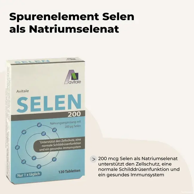 Таблетки селена Avitale, содержащие 200 мкг селена в виде селенита натрия, обеспечивают хороший запас этого важного микроэлемента для важных функций организма.
