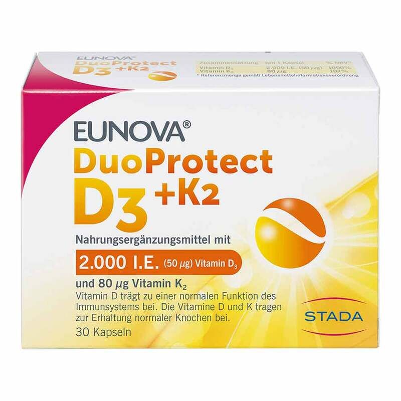 Eunova DuoProtect D3+K2 2000 I.E.Эунова Двойная защита Д3 + К2, 30 шт, Германия